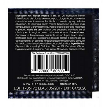 El Lubricante Excitante es intensificador del placer, formulado para otorgar lubricación extra en los encuentros sexuales. Elaborado a base de agua y de silicona de lenta absorción, te permitirá sentir mayor lubricación durante más tiempo. Sabor y aroma a frutilla, posee leve efecto calor que maximiza el placer.